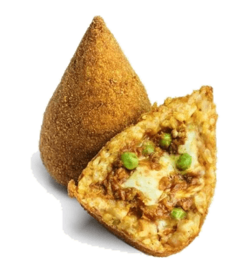 Gefrituurde risottobal met ragùsaus en mozzarella